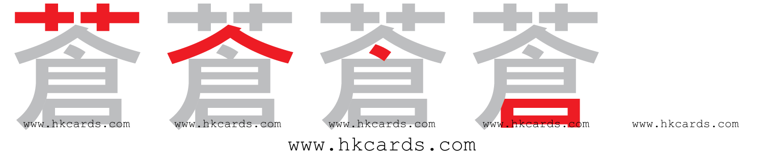 hkcards 倉頡字典字典,可查詢倉頡碼和速成碼,有拆碼圖解及標示字首字身。共收錄約19000字。